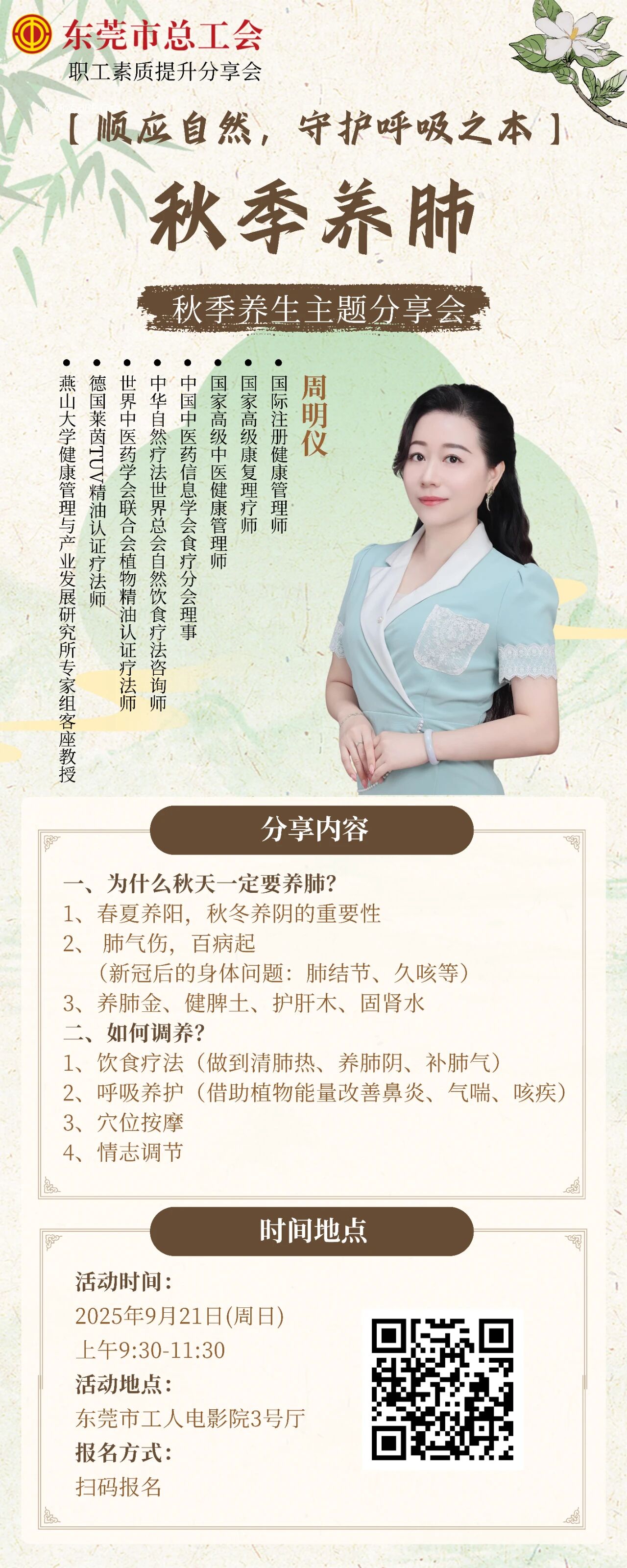 秋季养肺专场,本期职工素质提升分享会不容错过!快来报名